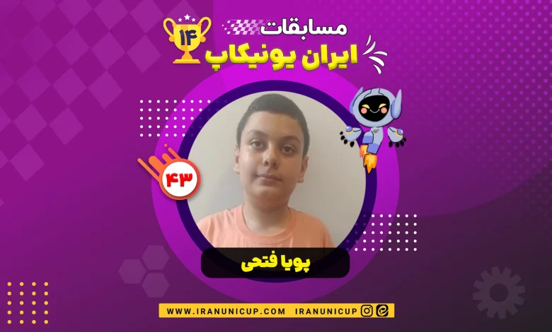 آقای پویا فتحی شرکت کننده ی شماره 43 مسابقات رباتیک دانش آموزی ایران یونیکاپ 12ساله از تهران