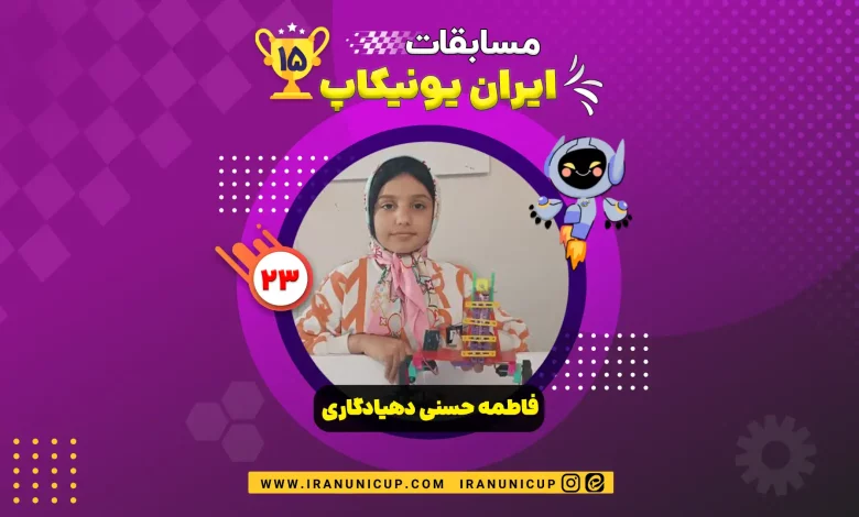 خانم فاطمه حسنی ده یادگاری شرکت کننده ی شماره 23 مسابقات رباتیک دانش آموزی ایران یونیکاپ 9 ساله از سیرجان کرمان
