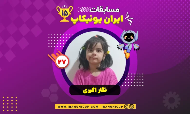 خانم نگار اکبری شرکت کننده ی شماره 27 مسابقات رباتیک دانش آموزی ایران یونیکاپ 5 ساله از کهگیلویه و بویراحمر