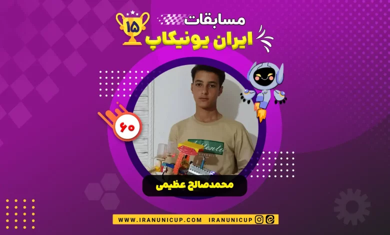 آقای محمدصالح عظیمی شرکت کننده ی شماره 60 مسابقات رباتیک دانش آموزی ایران یونیکاپ 14 ساله از #قزوین
